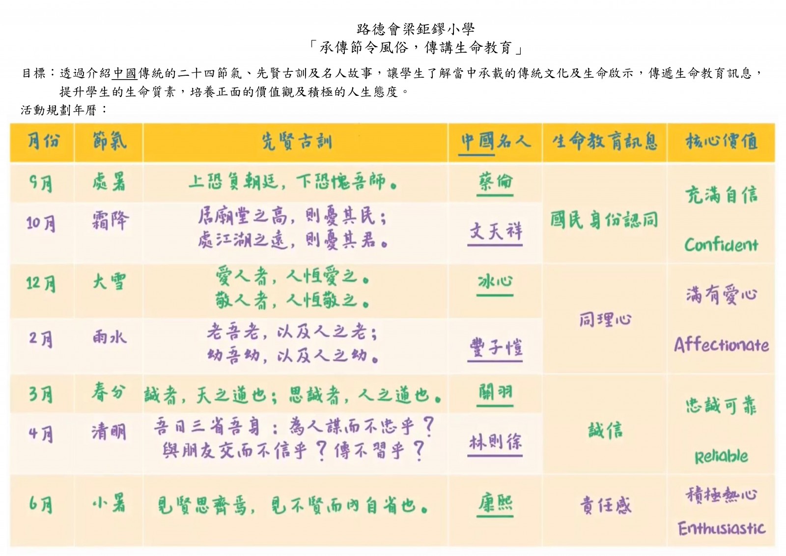 承傳節令風俗,傳講生命教育
